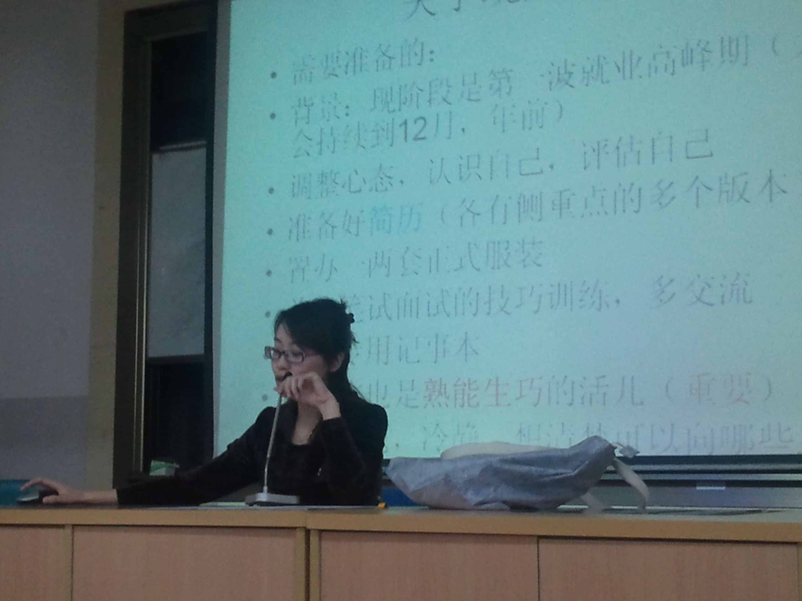 最后,针对同学们提出的自己在找实习单位过程中的疑惑和实际遇到的困难等问题,林老师结合往届毕业生的具体事例,生动而有说服力的为同学们进行了解答。