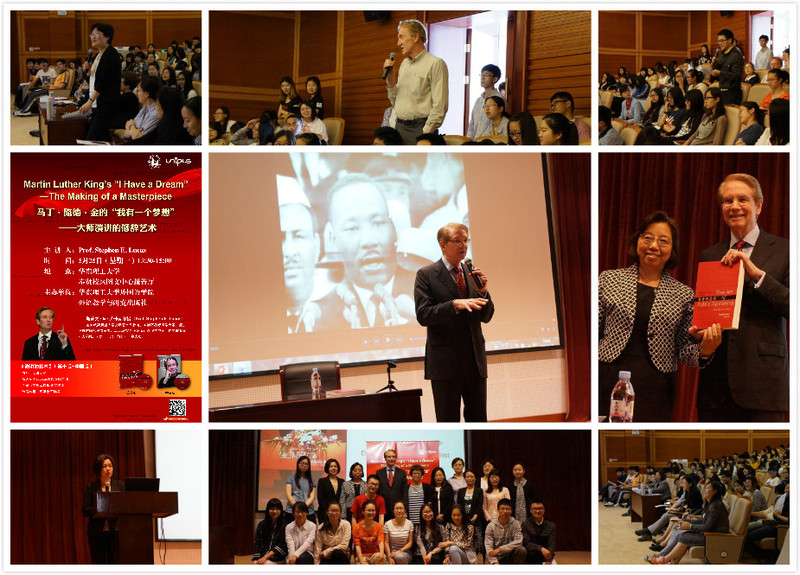 5月25日下午,奉贤校区图文信息中心报告厅座无虚席,大家聚精会神地聆听来自美国威斯康星大学传播艺术系教授斯蒂文·E.卢卡斯(Pro.Stephen E. Lucas)的题为“马丁·路德·金的我有一个梦想——大师演讲的修辞艺术”的精彩讲座。该讲座由bat365在线平台官网主办,英语系主任杨慧敏主持,副院长颜静兰致欢迎辞。