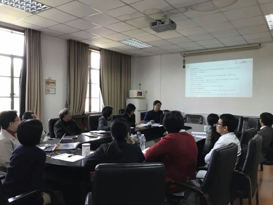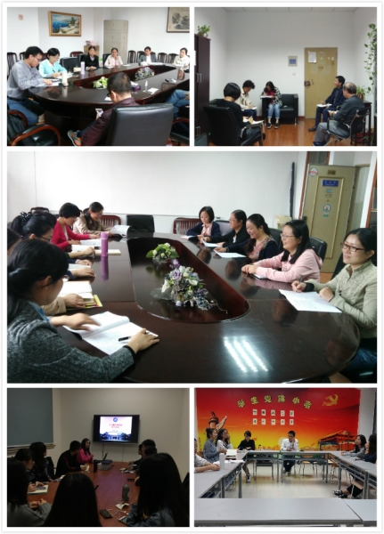 图片说明:外国语党政班子、党总支委员和教工党支部书记开展专题学习会