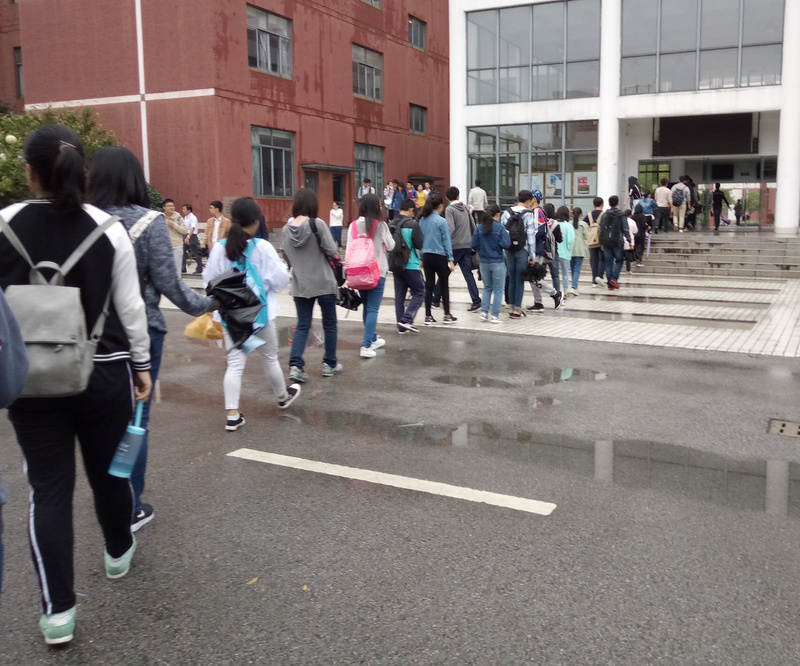 图片说明:报名的队伍排到的教学楼外