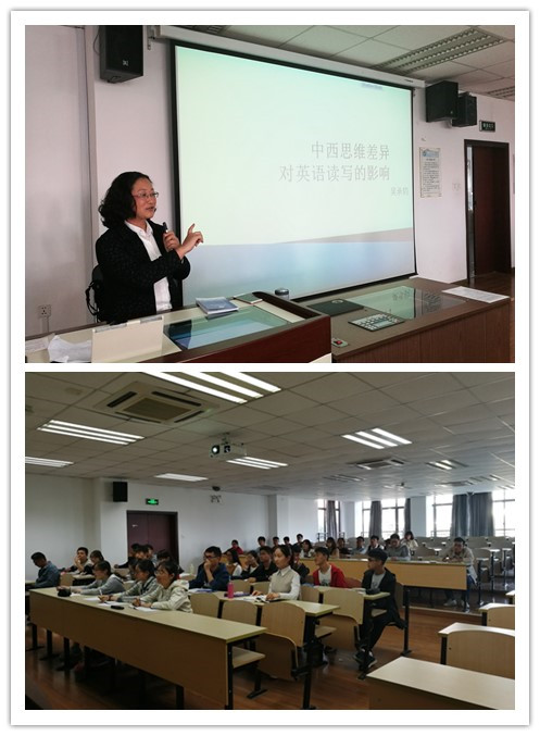 11月4日,大学英语党支部与17级新生“励志明德班”共建活动之系列讲座第三讲如期在奉贤E教205进行。bat365在线平台官网大学英语教学部吴承钧老师为同学们作了题为“中西思维差异对英语读写的影响”的讲座。