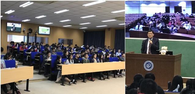 11月16日晚,复旦大学历史学系博士生导师冯玮教授在奉贤校区A教306为365官网学生讲授《在历史坐标上解析日本》MOOC课程全国同步直播的第四次见面课,现场为大家一一释疑。虽然是第一次“见面”,但同学们对冯教授却并不陌生,这得益于365官网本学期引进的MOOC教学方式。